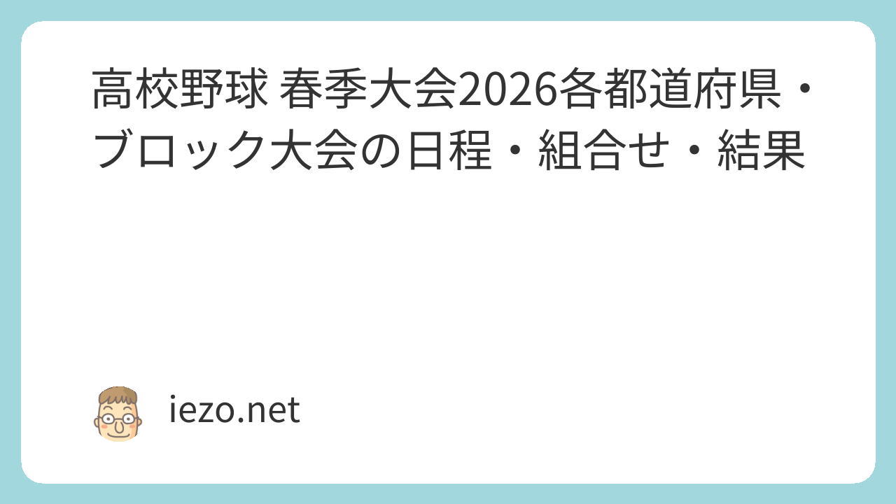 高校野球 春季大会2026各都道府県・ブロック大会の日程・組合せ・結果スポンサーリンク 2026.03.16 夏の高校野球選手権大会の、前哨戦ともいえる高校野球春季大会。2026年度各都道府県、ブロック大会の日程・組合せ・結果・動画のまとめを随時更新しています。スポンサーリンク 日程・組合せ・結果北海道・東北エリア東北大会北海道青森県岩手県秋田県宮城県山形県福島県関東エリア関東大会東京都神奈川県千葉県埼玉県茨城県群馬県栃木県山梨県甲信・北陸エリア北信越大会長野県新潟県富山県石川県福井県東海エリア東海大会愛知県岐阜県三重県静岡県関西エリア近畿大会大阪府兵庫県京都府滋賀県奈良県和歌山県中国エリア中国大会広島県岡山県山口県島根県鳥取県四国エリア四国大会愛媛県徳島県香川県高知県九州エリア九州大会福岡県鹿児島県熊本県長崎県宮崎県大分県佐賀県沖縄県