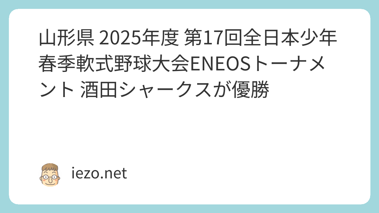 新メンバーによる最初の全国大会となる、文部科学大臣杯全日本少年春季軟式野球大会ENEOSトーナメント。2024年度第16回大会山形県予選は、9月7日(土)~8日...