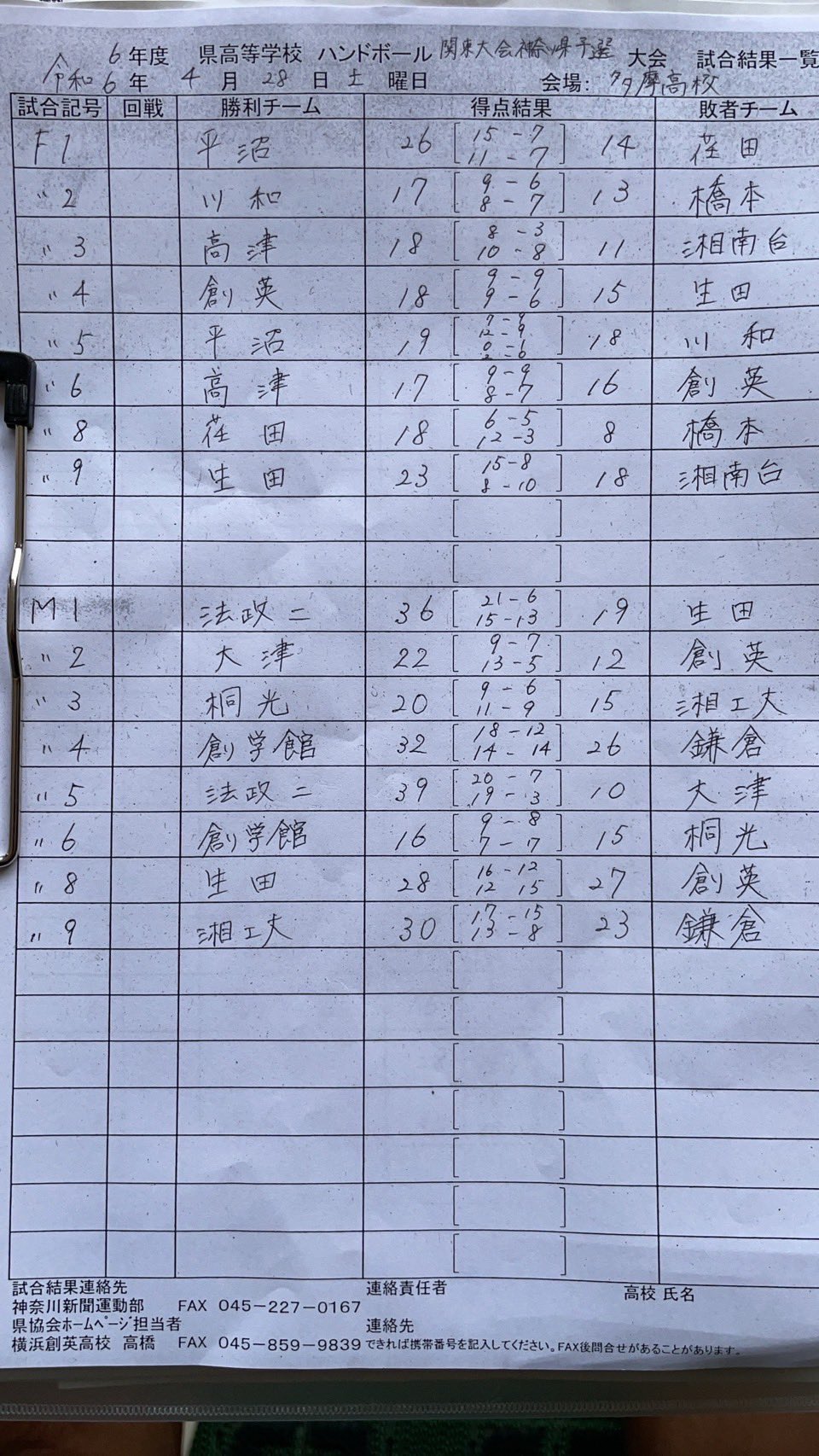 神奈川県 高校総体ハンドボール2023インターハイ予選 男子法政二、女子平沼が優勝