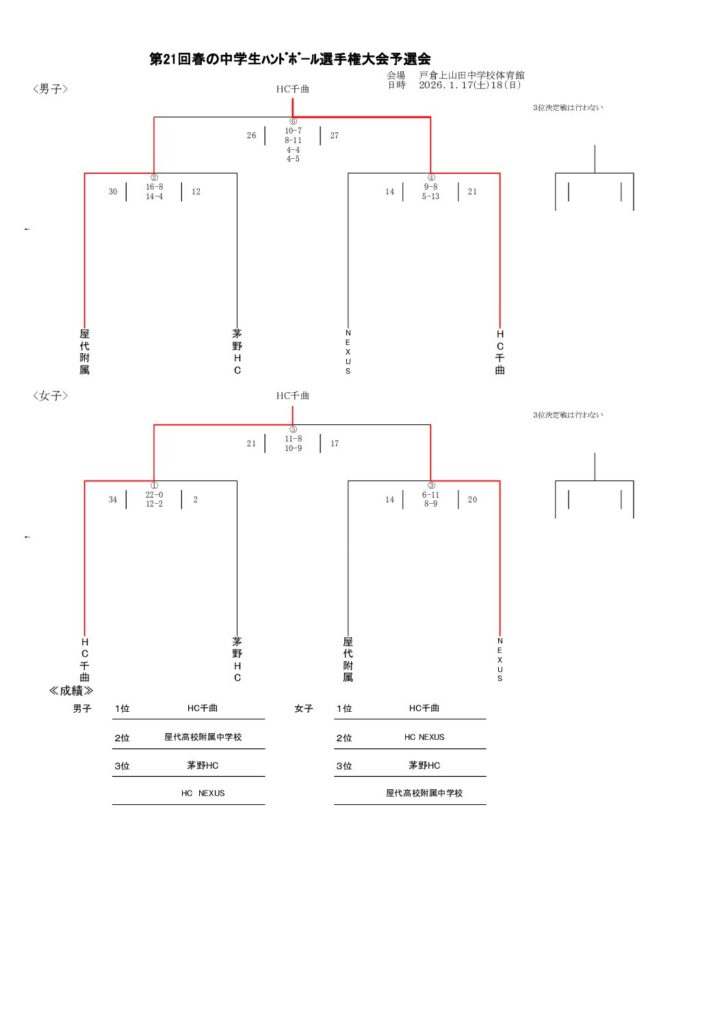 長野県 中学ハンドボール2024年度新人大会(選手権大会予選) 男女共に屋代中学校が優勝